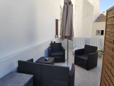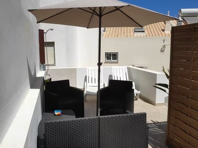 • Através da varanda do segundo quarto, tem-se acesso ao terraço, o rooftop que está equipado com chuveiro e zona com cadeiras para apanhar sol, e possui uma vista única sobre o casario da cidade, bem como uma zona para relaxar, tomar refeições ou banhar-se no sol algarvio, podendo sempre refrescar-se com o chuveiro lá instalado, nos dias mais quentes do verão.