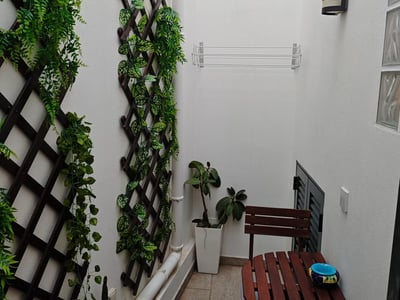 • Encontra-se também na área traseira da casa o acesso ao logradouro, onde os hóspedes poderão desfrutar de refeições e bons momentos ao ar livre.